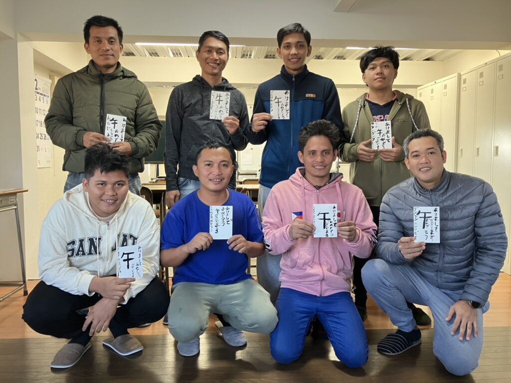 実習生、お習字教室にて年賀状を書きました~